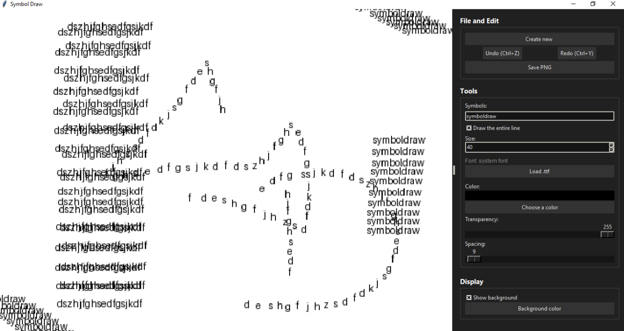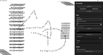 Symbol Draw is a lightweight drawing tool that uses glyphs from any installed font as your brush. The program allows you to "paint" with text directly onto a canvas.